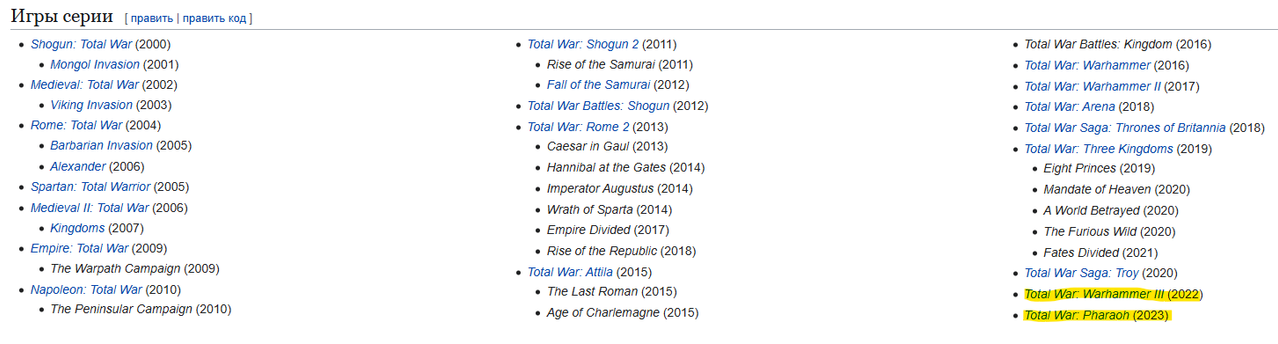 Напоминаю, что Total War: Pharaoh вышел в 2023 году, а TWW 3 в 2022: