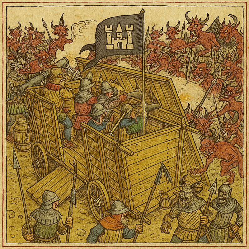 Найм элитных крестьянских отрядов: Ратники Монфора, Монкрёзские железные щиты – 1 единица. «Молоты Монфора» — 2 единицы. «Перст Герцога» — 5 единиц. Вагенбург – 6 единиц.