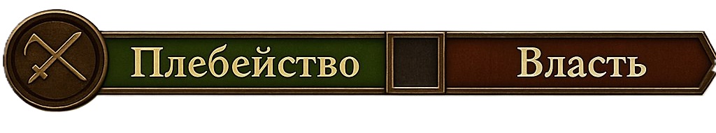 Политическая стабильность. Индикатор, присущей каждой отдельной провинции, выражающийся в очках «Плебейства» и «Власти». Очки «Власти» начисляются за каждую военную и оборонительную постройку, а также за строительство зданий часовни Грааля. Очки «Плебейства» начисляются за каждое экономическое здание, а также за кузницы и мануфактуры.