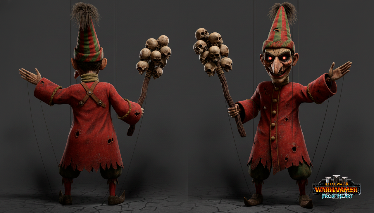• Пассивная способность "Смех без причины": Постоянная аура, которая накладывает на вражеские отряды случайный небольшой штраф каждые 10 секунд: либо к скорости, либо к атаке, либо к дисциплине.