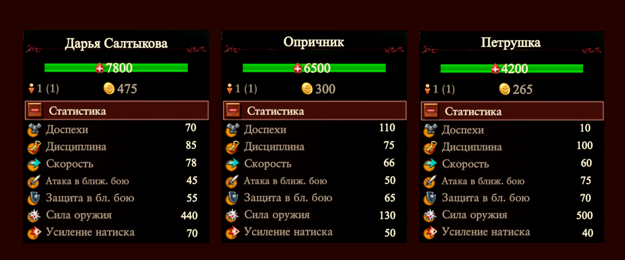 Петрушка и Дарья Салтыкова получают +8 к атаке и защите в ближнем бою, когда сражаются вместе