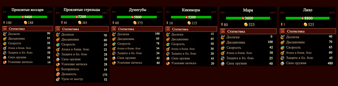 • Проклятие Кровавой боярыни: +12% к содержанию всех отрядов до тех пор, пока Дарья не проведет ритуал "Жатвы" в первый раз