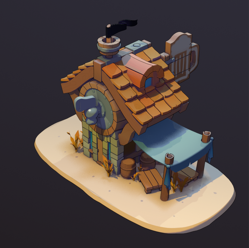 Это не первое, что я сообразил в блендере, а потому крайне недоволен результатом. У меня поломался рендер, он совершенно не соответствовал тому, что я видел на рендере окна вьюпорта, а так как я совсем зеленый новичок, не понял, как исправить. Анимации кое-какие сделал, но даже не пытался их рендерить, потому, что полом.