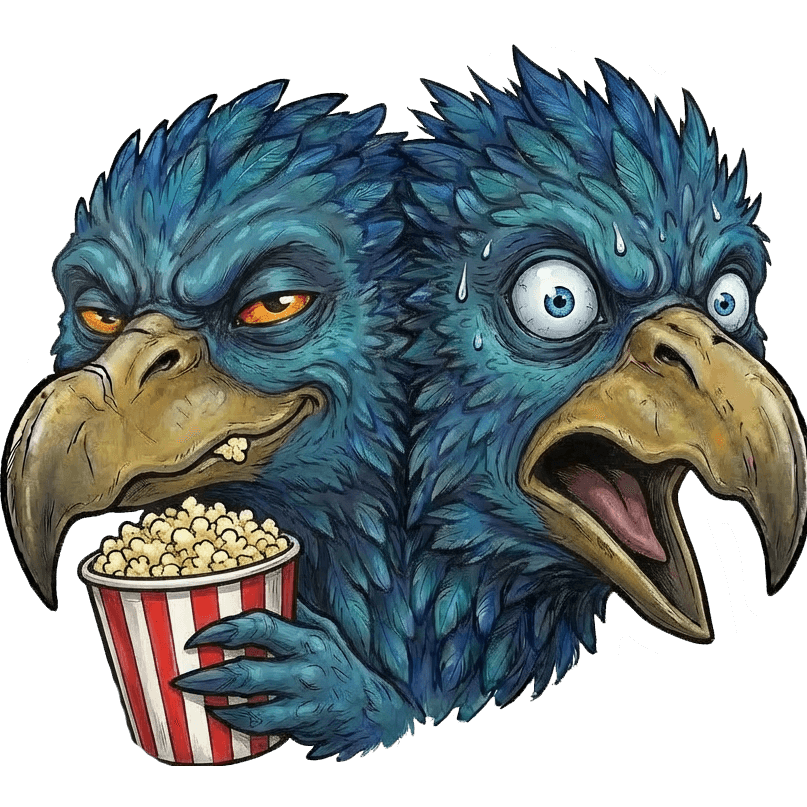 И то же самое можно попробовать применить к Кайросу: например, одна голова, смотрящая в прошлое, на расслабоне, как в кинотеатре (попкорн можно пририсовать, если получится), а вторая, направленная в будущее, максимально напряжена в стиле «видела некоторое дерьмо» Avallon