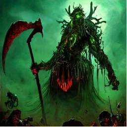 По легенде, когда-то Дедушка лично заказал этих Конструктов у Мараи, чтобы они помогали ему подрезать цветочки в Садах и при этом не становились для них удобрением. С тех пор некоторые высокопоставленные нурглиты успели оценить и другие достоинства Жнецов. Этот огромный конструкт (по умолчанию тощий и похожий на огородное пугало с косой, разве что на вместо головы рогатый череп) иммунен к контактным эффектам и способен осуществлять добивание вражеского отряда… с телепортацией нему. Правда, для этого Жнец должен иссушить оплетающие его лозы, которые нарастают, пока он бьёт кого-то в рукопашной. Чем больше лоз, тем ниже порог здоровья, который он должен остаться у цели, чтобы юнит мог свершить Жатву. Создаются в Кузнице Душ из возвышенных Чумоносцев или Великих Нечистых, либо нанимаются Легионом Хаоса в столичных казармах при выборе покровительства Нургла.