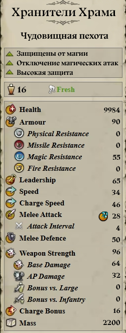 Особенность «Хранитель» для ЛГ и +10% защита от выстрелов для лорда.