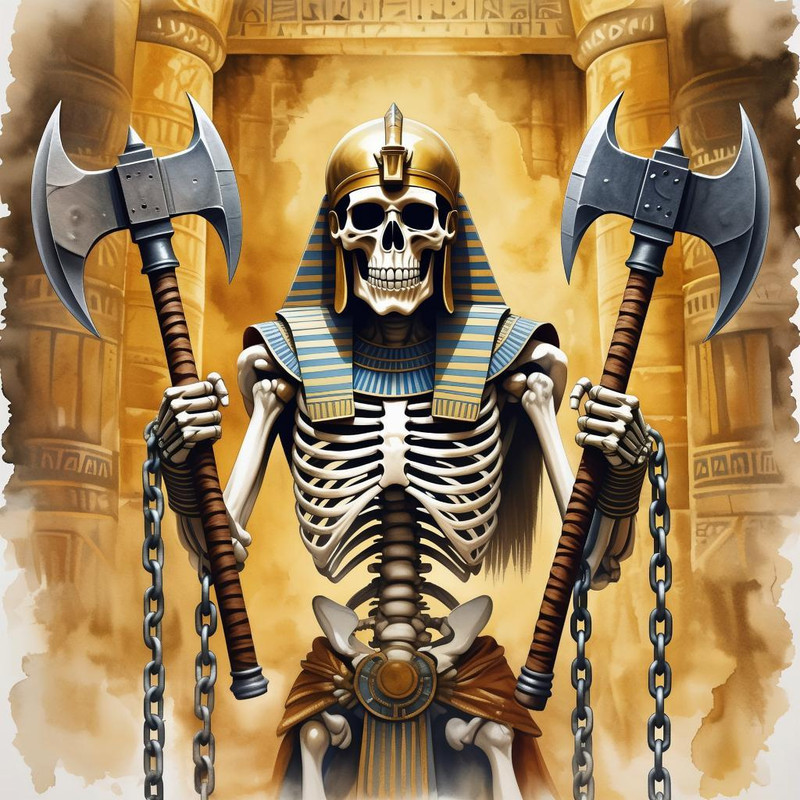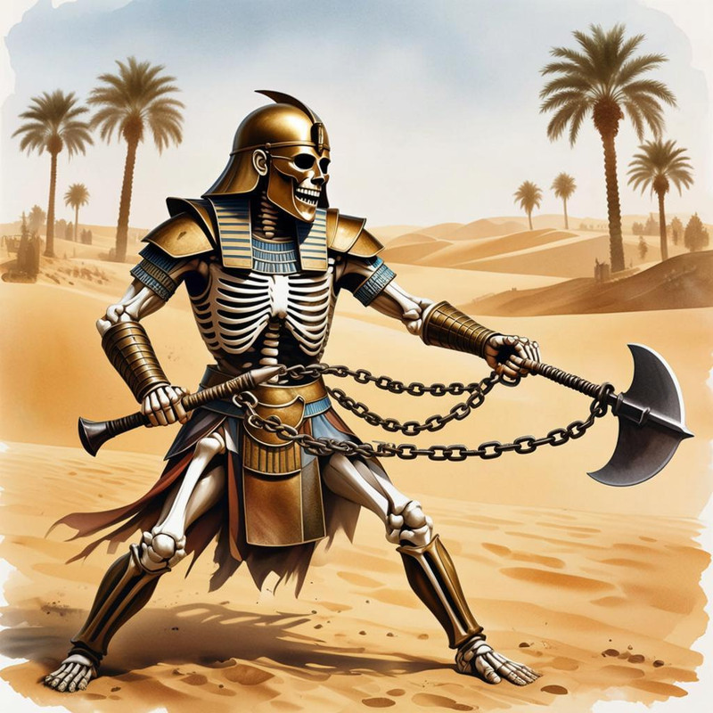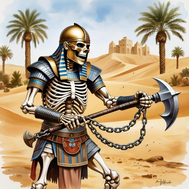 Вооружены тяжелыми секирами (некоторые модельки двумя в обе руки, на боевые характеристики это не влияет). За счет хорошего бронебойного урона способный драться с кем и чем угодно. Они в полтора раза крупнее ушебти.