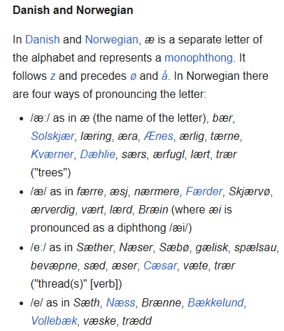 То есть для скандинавского дифтонга ae уместными будут и транслитерация "аэ" и "э" / "е". Не могу выделить конкретный правильный вариант. Быть может, есть более старая традиция, нежели то, что написано на wiki?