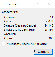 Статистика Ворда: