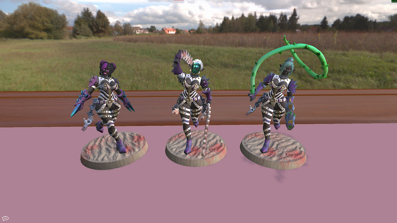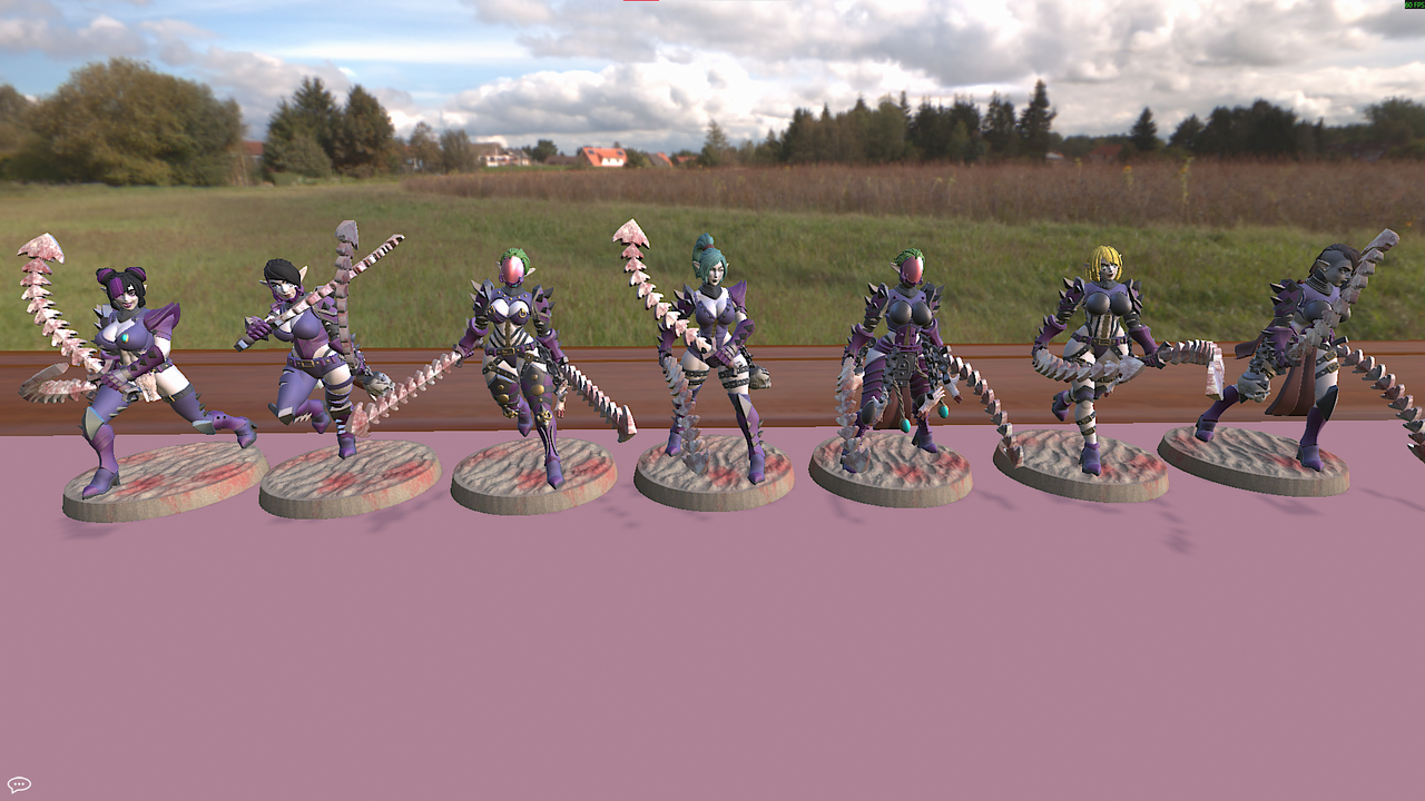 Для меня женские модели избыточно анимешны в чертах лиц и формах, но это уже на любителя. В остальном — прекрасно! Модели детализованные, раскрас в едином стиле и сделан с выдумкой, мужские персонажи вполне каноничны (хотя снова спрошу сам себя — а что вообще есть канон, в Вархаммере-то? :). Так держать, сударь!