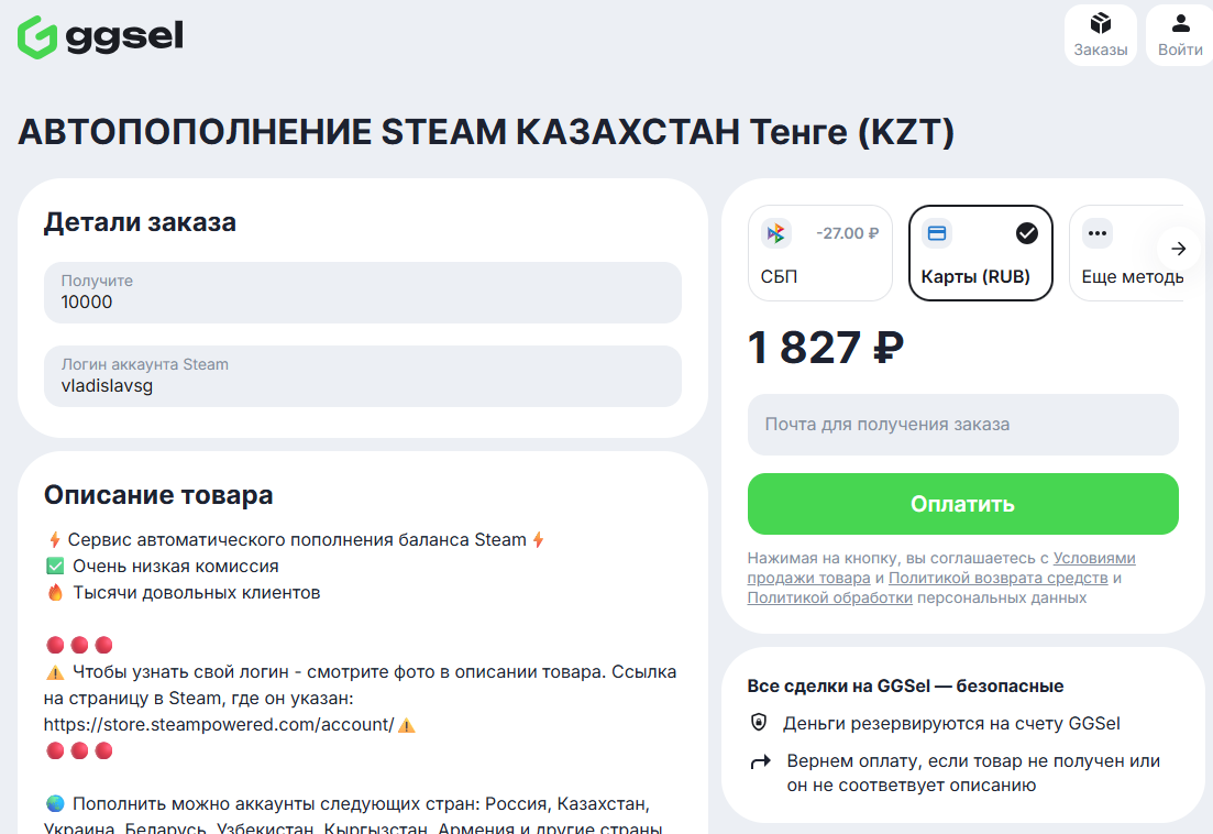 Теперь узнаем, сколько придется заплатить в различных сервисах, чтобы получить те же самые 10 000 тенге на свой баланс (счет Steam).