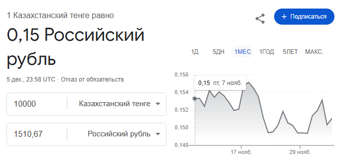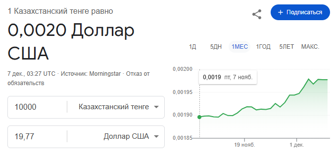 Здесь интереснее, так как сервис пишет сумму в долларах. Тогда посмотрим, сколько 10 000 тенге будет в долларах: