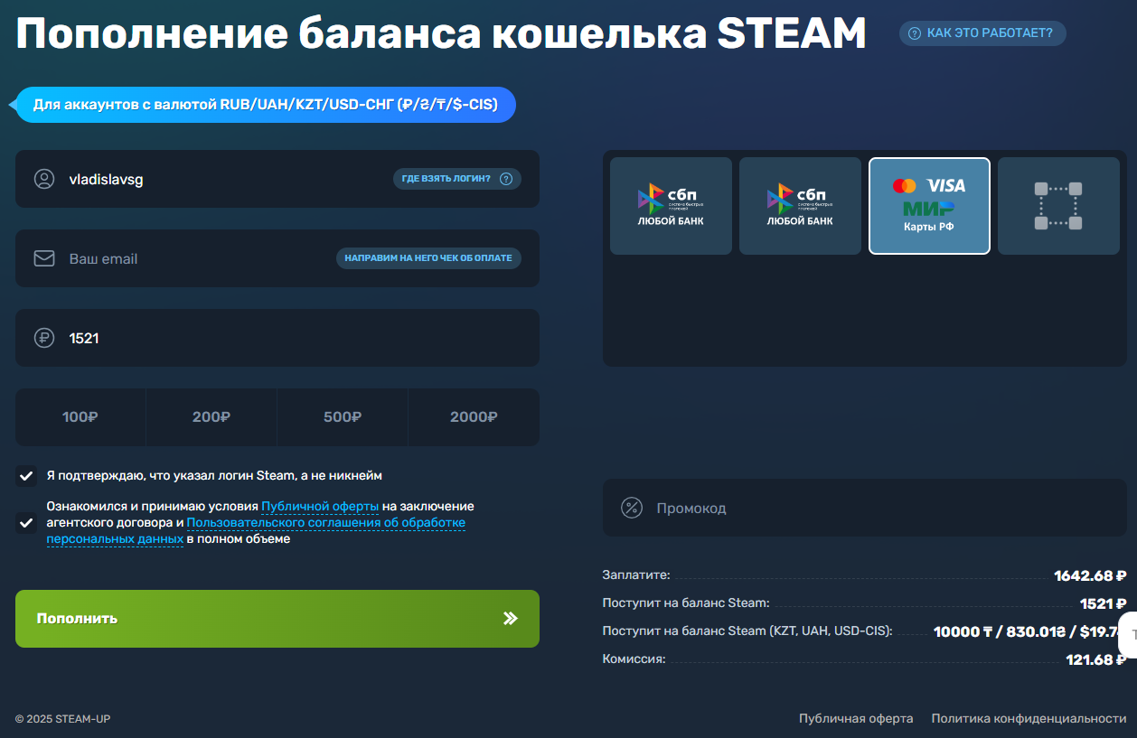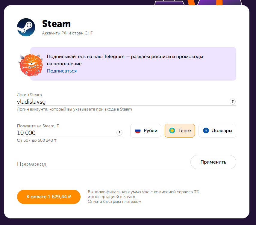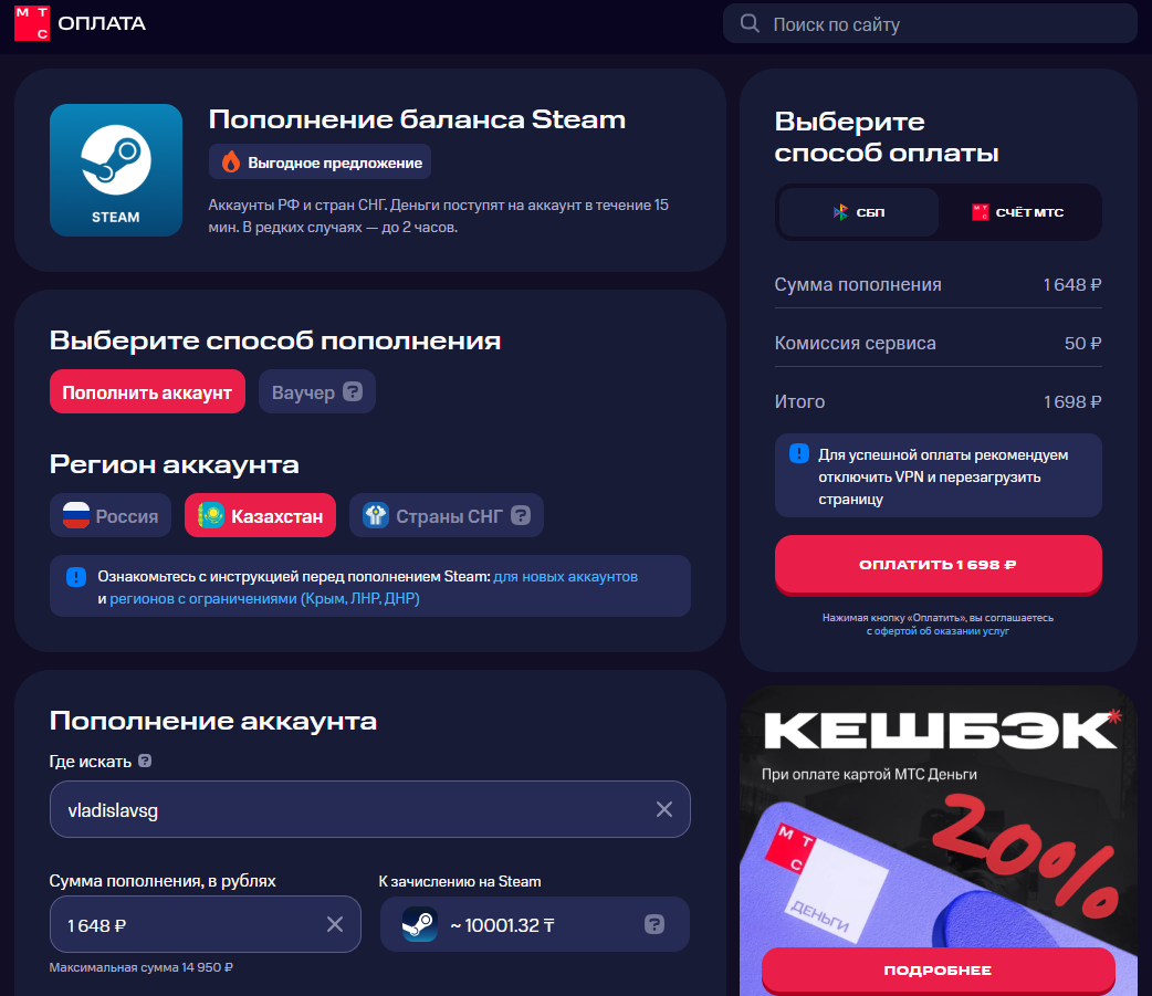 P.S. Если вы пополняете Steam через другой сервис, то будет очень круто, если добавите в своём посте инфо и по нему :)